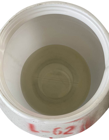 | L62 | 無色透明液體 | 2500 | 400 | 21~26 | — | ≤1.0 | 5.0~7.0 | 7 |